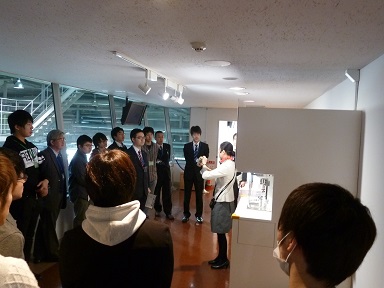 学生有志が運営ボランティアスタッフとして前日の会場準備、当日の来場者への対応、撤収などで参加したほか、産業デザイン科ブースで来場者に実習課題作品の説明など行いました。