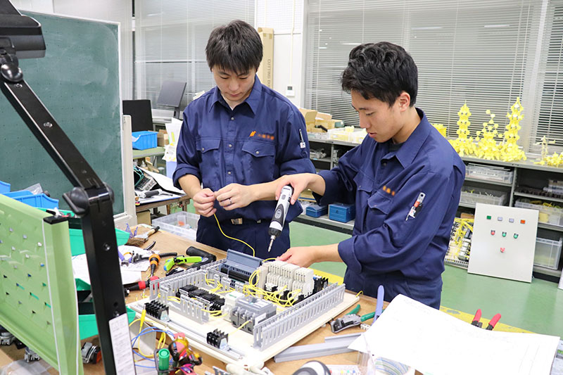 工場の装置を自動で動かすためのシーケンス制御プログラミングや、ロボット制御、油・空圧制御システムの構築などを実践します。